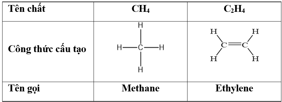 (0,5 điểm) Viết công thức cấu tạo và đọc tên các chất sau: CH4, C2H4