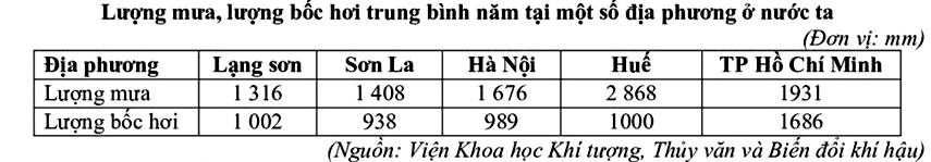 Dựa vào bảng số liệu, hãy cho biết địa phương nào có cân bằng ẩm lớn thứ hai?