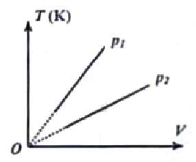 Hình bên biểu diễn hai đường đẳng áp của cùng một khối khí xác định trên hệ trục (T, V). Nhận xét nào sau đây là đúng?