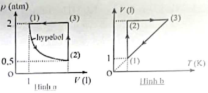 Một lượng khí lí tưởng có quá trình biến đổi trạng thái được mô tả trên hệ tọa độ (p, V) như hình a. Biết ở trạng thái (1) khối khí có nhiệt độ $27^{0}C$.