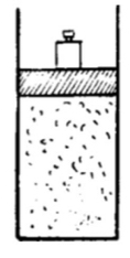 Sau khi học xong bài định luật Boyle, một học sinh tiến hành đo khối lượng của một quả cân và tiến hành như sau: Dùng một xilanh có tiết diện $100\,\, cm^{2}$ và pít-tông nhẹ chuyển động không ma sát. Nhốt bên trong xilanh một lượng khí theo phương thẳng đứng (Hình vẽ). Học sinh này dùng thước đo được khoảng cách từ pít-tông đến đáy xilanh là $h_{1} = 50\,\, cm$, sau đó đặt nhẹ quả cân lên pit-tông để pít-tông dịch chuyển chậm rồi dừng lại, dùng thước đo được khoảng cách từ píttông đến đáy xilanh là $h_{2} = 40\,\, cm$. Biết tại nơi đặt xilanh áp suất khí quyển là $10^{5}\,\, Pa$, gia tốc trọng trường $g = 10\,\, m/s^{2}$. Quá trình đo nhiệt độ khí trong xilanh hầu như không thay đổi.