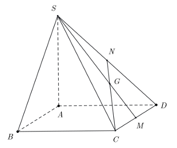 Cho hình chóp SABCD có đáy là hình vuông cạnh $a,SA\bot(ABCD),SA = a$. Gọi G là trọng tâm tam giác SCD.