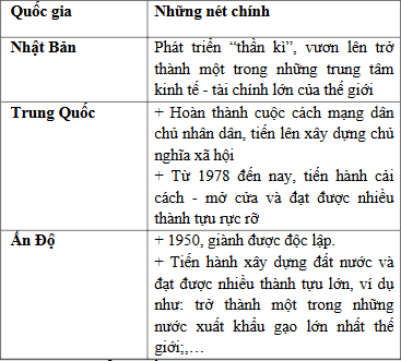 Lập bảng thể hiện những nét chính về Trung Quốc, Nhật Bản, Ấn Độ từ năm 1945 đến năm
