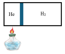 Trong một xilanh nằm ngang, kín hai đầu, có một pit-tông cách nhiệt có thể di chuyển không ma sát. Phần bên trái xilanh chứa khí He, phần bên phải chứa khí $H_{2}$ với cùng khối lượng, cùng nhiệt độ $27^{0}C$ và có cùng áp suất 1 atm. Sau đó, nung nóng phần chứa khí He lên tới $t^{0}C$ làm pit-tông dịch chuyển đến chính giữa của xilanh. Coi rằng sự thay đổi nhiệt của khí $H_{2}$ là không đáng kể. Giá trị của t là bao nhiêu (làm tròn kết quả đến chữ số hàng đơn vị)?