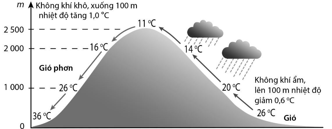 Quan sát hình sau:Quá trình hình thành gió phơna) Hãy trình bày quá trình hình thành gió phơn.b) Ở