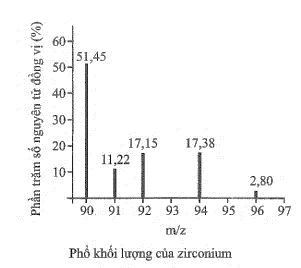 Phổ khối lượng của zirconium được biểu diễn như hình sau đây (điện tích z của các ion đồng vị zirconium đều bằng 1+).