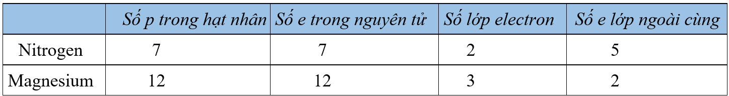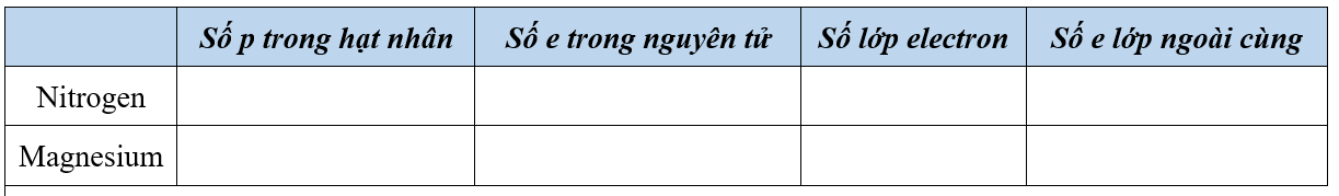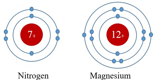 Cho mô hình nguyên tử của nitrogen và magnesium: