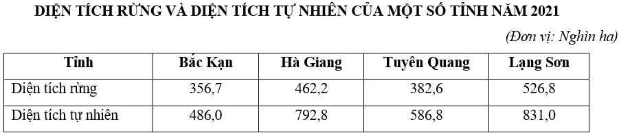 Cho bảng số liệu:Tỉ lệ diện tích rừng của tỉnh Hà Giang so với diện tích tự nhiên của