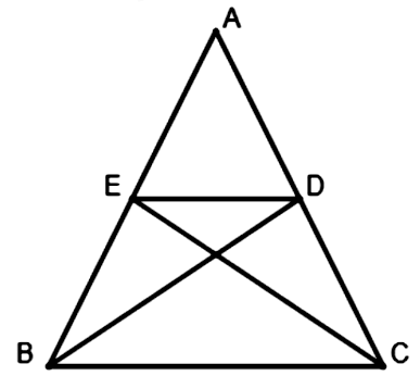 Sử dụng tính chất của tam giác cân suy ra được $\angle AED = \angle ADE = \angle ABC = \angle ACB = \dfrac{180^{0} - \angle A}{2}$