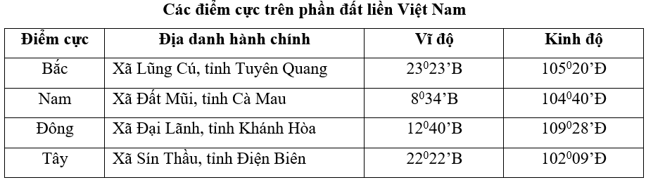 | a) Điểm cực Bắc của Việt Nam nằm ở xã Lũng Cú, tỉnh Tuyên Quang. | ||