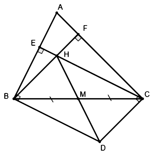 Cho $\Delta ABC$, trực tâm H. Các đường thẳng vuông góc với AB tại B, vuông góc với AC tại C cắt nhau tại D. CMR: