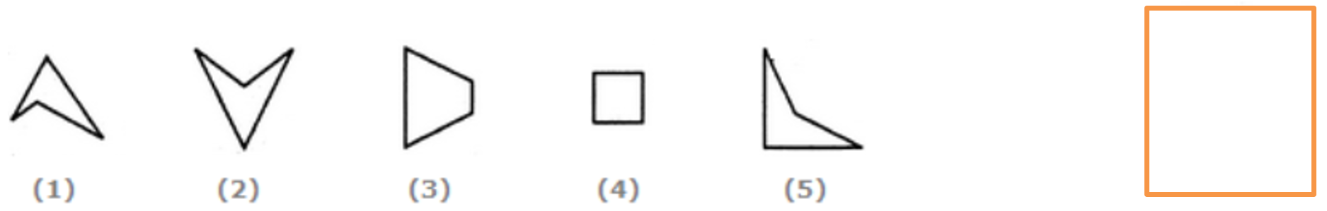 Select the alternative which represents three out of the five alternative figures which when fitted into each other would form a complete square.