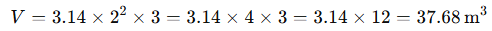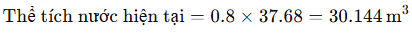 (Một bể nước hình trụ có đường kính 4 mét và chiều cao 3 mét. Bể chứa đầy nước đến 80% dung tích. Hỏi thể tích nước hiện tại trong bể là bao nhiêu? (Sử dụng π ≈ 3,14))