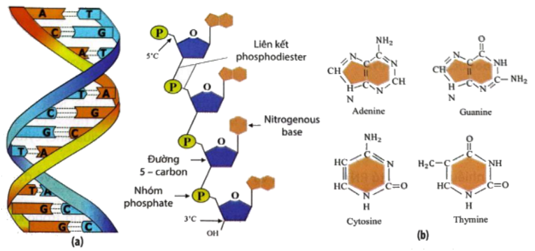 Dựa vào hình vẽ mô tả cấu trúc phân tử DNA, hãy xác định sự đúng, sai của các phát biểu