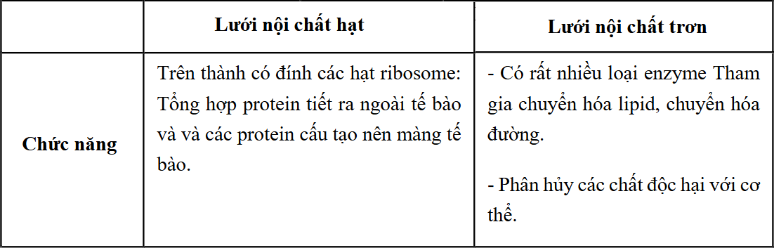 a. Phân biệt chức năng của lưới nội chất hạt và lưới nội chất trơn.