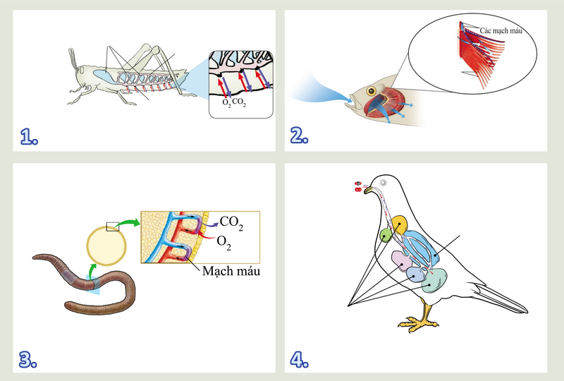 Quan sát hình sau và cho biết:Hình mô tả quá trình trao đổi khí qua hệ thông ống khí là hình