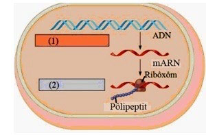 Hình trên minh hoạ cơ chế di truyền ở sinh vật nhân sơ, (1) và (2) là kí hiệu các quá trình