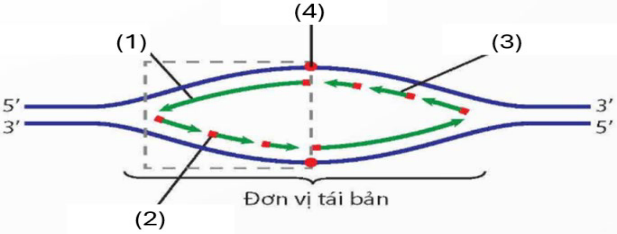 Hình ảnh sau đây mô tả khái quát quá trình tái bản DNA, mạch mới được tổng hợp liên tục