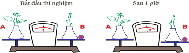 - Cân lệch về phía B nghĩa là bình A nhẹ đi do nước bị mất bởi sự thoát hơi nước.
