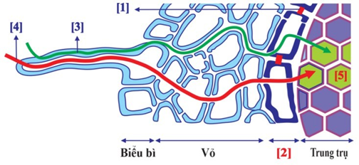 [3] Con đường vận chuyển nước và khoáng đi qua gian bào.