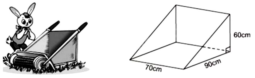 Thùng đựng của một máy cắt cỏ có dạng lăng trụ đứng tam giác. Hãy tính thể tích của thùng.
