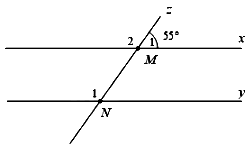 Cho hình vẽ, biết $x$//$y$ và $\angle M_{1} = 55^{0}$. Tính số đo góc