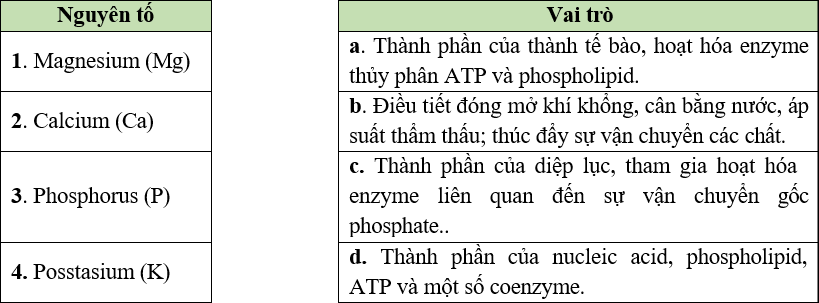 Nối vai trò của các nguyên tố khoáng sau đây sao cho hợp