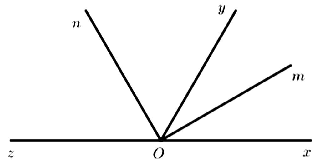 Cho $\angle xOy = 60{^\circ}$. Vẽ tia $Oz$ là tia đối của tia $Ox$. Vẽ tia $Om$ là tia phân giác của $\angle xOy,On$ là tia phân giác của $\angle yOz$.