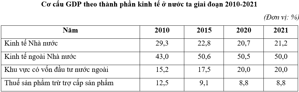 a) Dựa vào bảng số liệu và chứng minh sự thay đổi tỉ trọng của các thành phần kinh tế.