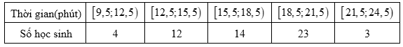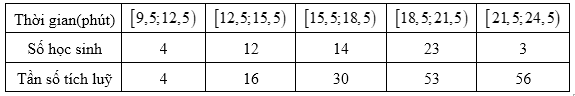 Thời gian (phút) truy cập Internet mỗi buổi tối của một số học sinh được cho ở bảng sauTrong
