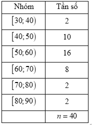Sau khi điều tra về cân nặng của 40 học sinh trong lớp 12 A ở một trường THPT $X$ thu được kết quả trong mẫu ghép nhóm sau: