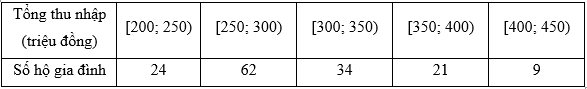 Kết quả điều tra tổng thu nhập trong năm $2024$ của một số hộ gia đình ở thành phố Nha