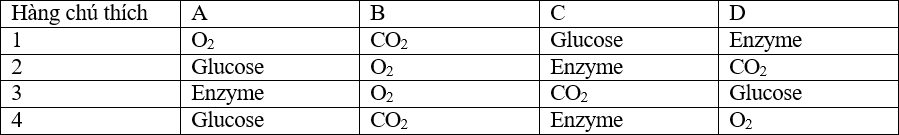 Hàng số mấy trong bảng sau đây có thể chú thích phù hợp cho các chất A, B, C, D của quá trình sinh học này?