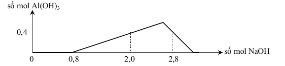 Khi nhỏ từ từ dung dịch chứa x mol NaOH vào dung dịch hỗn hợp gồm 0,8 mol HCl và 0,6 mol AlCl3, kết quả thí nghiệm được biểu diễn trên đồ thị sau: