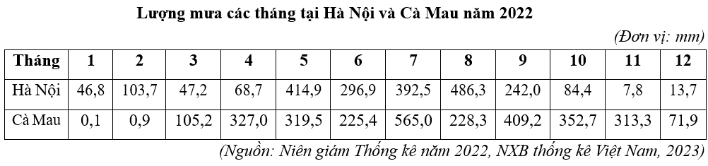 Căn cứ vào bảng số liệu trên, hãy cho biết địa điểm nào có tổng lượng mưa năm cao hơn?