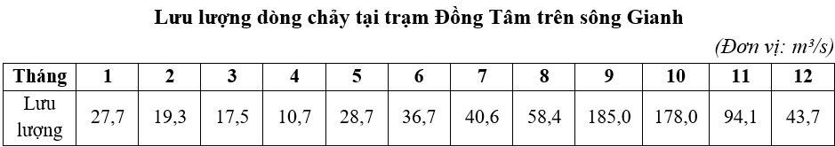 Cho bảng số liệu sau:Căn cứ vào bảng số liệu trên, hãy cho biết lưu lượng dòng chảy trung