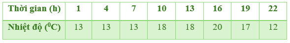 Bảng sau đây ghi sự thay đổi nhiệt độ của không khí theo thời gian dựa trên