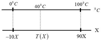 Một thang đo X lấy điểm băng là −10X, lấy điểm sôi là 90X. Nhiệt độ của