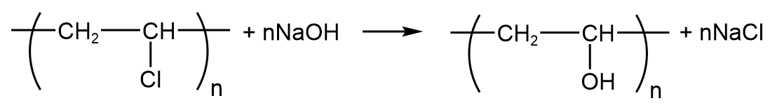 Trong công nghiệp, người ta có thể điều chế poly(vinyl alcohol) bằng cách đun nóng PVA trong dung dịch kiềm, khi đó xảy ra phản ứng sau: