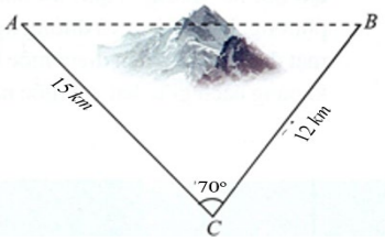 Để lắp đường dây điện cao thế từ vị trí A đến vị trí B , do phải tránh một ngọn núi nên người ta phải nối đường dây từ vị trí A đến vị trí C dài 15 km , sau đó nối đường dây từ vị trí C đến vị trí B dài 12 km. Góc tạo bởi hai đoạn dây AC và CB là $70^{{^\circ}}$. Dựa vào cách lắp dây điện trên, hãy tính khoảng cách từ vị trí A đến vị trí B là bao nhiêu kilomet? (Làm tròn đến hàng phần chục).