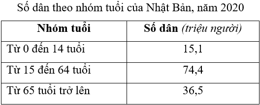 Cho bảng số liệu:Căn cứ vào bảng số liệu, hãy cho biết tổng số dân của Nhật Bản năm 2020