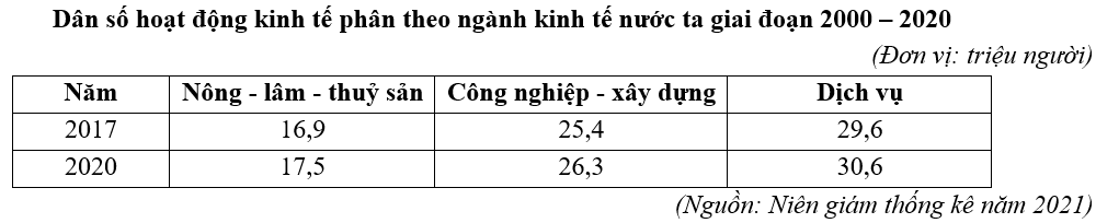 Căn cứ vào bảng số liệu trên, hãy cho biết dân số nước ta hoạt động nhiều nhất trong ngành kinh tế nào?