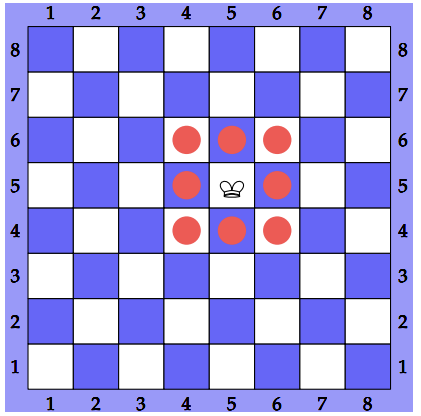 Một quân vua được đặt trên một ô giữa bàn cờ vua. Mỗi bước di chuyển,