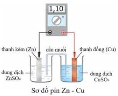 Cho pin Galvani Zn – Cu có cấu tạo như hình sau, ở 25 oC. Đóng kín mạch bằng cầu muối chứa