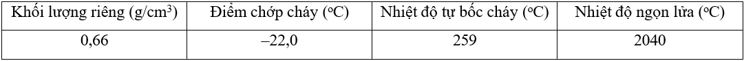 Cho một số thông tin về chất lỏng hexane (C6H14):Điểm chớp cháy là nhiệt độ thấp nhất mà