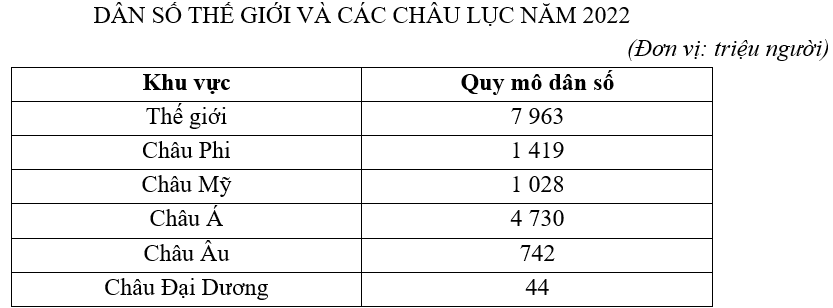 Cho bảng số liệu sau:Căn cứ vào bảng số liệu trên, hãy cho biết châu lục nào chiếm tỉ
