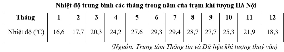 Em hãy tính nhiệt độ trung bình năm của trạm khí tượng Hà Nội.