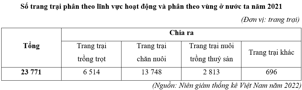 Cho bảng số liệu: Tính tỉ trọng số lượng trang trại chăn nuôi trong cơ cấu số