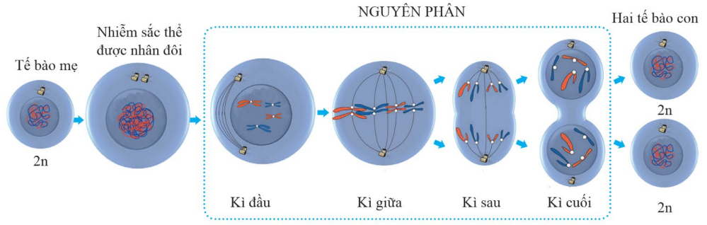 Nguyên phân là quá trình phân bào ở tế bào sinh dưỡng, từ 1 tế bào mẹ tạo ra 2 tế bào con có bộ nhiễm sắc thể giống nhau và giống tế bào mẹ.