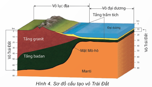 Dựa vào nội dung đặc điểm của vỏ Trái Đất, kết hợp với sơ đồ cấu tạo vỏ Trái Đất.